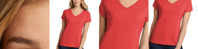 Primed for 24/7 comfort, a proprietary finish gives our tri-blend tee unbelievable softness at a great value. 4.5-ounce, 50/37/13 poly/cotton/rayon 1x1 rib knit neck Shoulder to shoulder taping Removable label for comfort and relabeling Side seamed with a contoured body for a feminine fit