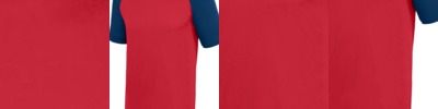 - Contrast color, self-fabric collar and raglan sleeves