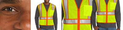 Two-tone contrast fabric under the reflective tape makes this breathable mesh vest stand out on the jobsite. 100% polyester mesh for breathability Durable, reflective 2-inch tape meets ANSI 107 requirements and provides 360-degree visibility on body Two-tone contrast fabric under reflective tape and contrast binding Left chest mesh pocket for essentials Interior lower right mesh pocket for additional storage Mic clip at left chest for easy access Molded center front zipper closure This garment must be fully zipped to be in compliance with ANSI 107 standards