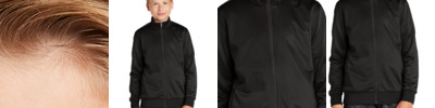 The classic tricot track jacket with pieced stripes and rib knit details. 100% polyester tricot 100% polyester rib knit cuffs and hem Soft-brushed backing Cadet collar Tag-free label Reverse coil zipper Pieced stripe on shoulders and sleeves Front pockets
