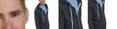 - Double-needle coverstitched hood, raglan sleeve, and band bottom