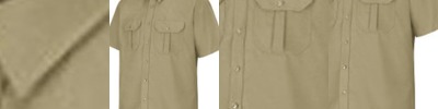 - Two hex style pockets with center pleat, button flaps and left pencil pocket