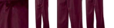 100% brushed tricot polyester • 7.2-oz. • covered elastic waistband and draw-cord • deep side pockets • side zipper • open bottom leg with double hem plus snaps for tighter and shorter fit • embroidered logo on left hip • Sizes: S-L