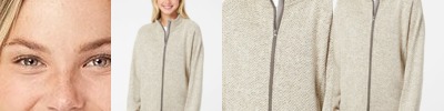 A layering must-have made of ultra-soft, snag-resistant microterry-it's as comfortable as it is polished in appearance. 6.8-ounce, 62/33/5 poly/rayon/spandex microterry Snag-resistant Tag-free Cadet collar with reverse-coil dyed-to-match zipper Back yoke Self-turned cuffs and hem