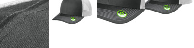 * Polyester/rayon * Trucker Mesh * Mélange fabric front panel * Breathable * Full-profile, arch crown * Shape-able flat bill * Self-material undervisor * Pro-stitched finish * Snapback adjustable