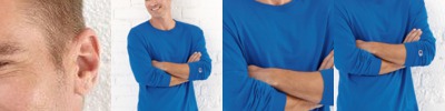 - Double-needle coverstitched front neck, sleeves and bottom