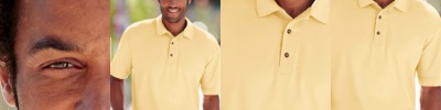 preshrunk 65% polyester 35% cotton sheer jersey • 3.7-oz. • 40 singles for extreme softness • front cover-stitched self-fabric collar • satin label • Sizes: S-XL