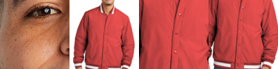 Show your team spirit in this retro-inspired jacket that offers weather-fighting protection. 100% polyester with water-resistant coating 2.4-ounce polyfill insulation in body 1.8-ounce polyfill insulation in sleeves Tag-free label Dyed-to-match metal snap closure Locker loop Front welt pockets Decoration access pocket 1x1 striped rib knit at collar, cuffs and hem