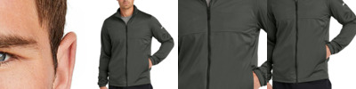 Designed with Storm-FIT technology to shield you from wind and rain, this sporty performance jacket has stretch for movement. Features a zip-through collar, side pockets and elastic cuffs. The contrast heat transfer Swoosh logo is on the left sleeve. Made of 3.7-ounce, 100% polyester with a durable water-repellent (DWR) coating and mesh lining.