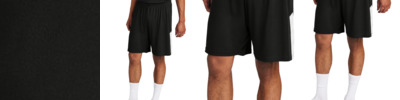 Go the distance in this moisture-wicking short. 3.5-ounce, 90/10 poly/spandex Snag-resistant Tear-away label Elastic waist band Interior drawcord Two slash pockets Zippered back pocket 7-inch inseam