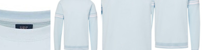• Striped ribbed-knit inset on sleeves
