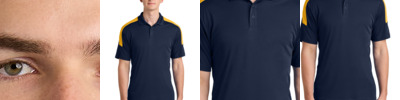 Support your team with this moisture-wicking polo. 3.8-ounce, 100% poly interlock with PosiCharge ® technology UPF rating of 30+ Moisture-wicking Perfect for all-around team uniforming Self-fabric collar Self-fabric neck tape 5-button placket Dyed-to-match buttons Colorblock shoulder panels Tear-away label