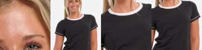 - Coverstitched neck, shoulders, armholes, cuffs and bottom band