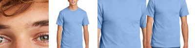 100% combed cotton jersey • 4.3-oz. • 32 singles for extreme softness • front cover-stitched 1x1 baby rib-knit set-in collar • tear-away label • Sizes: S-XL