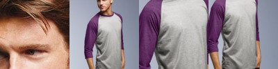 preshrunk 50% polyester/25% combed ring-spun cotton/25% rayon • 4.7 oz. • 30 singles • semi-fitted with side seams • contrast set-in collar and 3/4-length raglan sleeves • single-needle topstitched back neck • double-needle sleeve and bottom hems • tear-away label • Sizes: XS-2XL