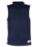 100% Polyester moisture management/ antimicrobial performance fabric • 3.5 oz. • Reversible v-neck tank • Contrast self-fabric stripes • Double-needle hemmed armholes & jersey bottom • Collegiate cut • Badger size jock tag • Sizes: XS-2XL