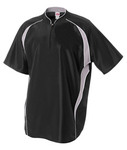 100% Polyester moisture management/antimicrobial performance fabric • 3.5-oz. • Self fabric v-neck collar • Contrast front shoulder inserts and outer side panels • Double-needle hemmed armholes and jersey bottom • Collegiate cut • Badger size jock tag • Sizes: XS-2XL, see colors