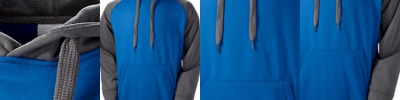 preshrunk 40% ring-spun cotton/60% polyester terry fleece • 7-oz. • 30 singles • semi-fitted silhouette with princess side seams • 1/4" contrast grey neck tape • unlined crossover hood • pouch pocket • 3" 1x1 rib-knit cuffs and waistband with spandex • triple-needle topstitched hood neck, shoulders and waistband • triple-needle sleeve and bottom hems • woven label • Sizes: S-2XL