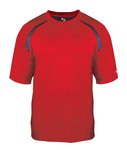 83% polyester/17% spandex moisture management fabric. • 5-oz. • Stretch body fit • self fabric collar • Double needle hem with tack • Badger heat seal logo on center back of neck • Sizes: S-3XL, see colors