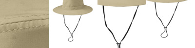 • Features: Adjustable cord at crown, clip-on and adjustable drawcord