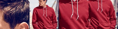 preshrunk 75% combed ring-spun cotton/25% polyester fleece • 7.2 oz. • 30 singles • classic fit • tubular construction • double-needle topstitched neck • 1/4" white neck tape • unlined hood with white drawcord • back patch • 2” rolled forward shoulders • 1x1 ribbed cuffs and waistband with spandex • woven label • Sizes: XS-3XL
