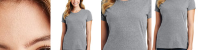 You'll be the biggest fan around of this 100% ring spun cotton tee. 4.5-ounce, 100% ring spun cotton, 30 singles 90/10 cotton/poly (Athletic Heather) 50/50 cotton/poly (Dark Heather Grey) Ladies fashion fit Removable tag for comfort and relabeling