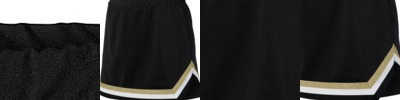 • Left side seam V-notch at hem accented with three-color trim