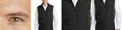 Insulation and stretch soft shell side panels make this vest a versatile, flattering and cozy cold-weather layer. Can be zipped in and secured by snap attachments inside an outer Collective layer 100% polyester woven shell 100% polyester knit bonded to a water-resistant film insert and a 100% polyester microfleece lining at side panels and under arms 100% polyester printed lining with insulation behind the outer woven shell Slightly longer length Zip-through cadet collar Molded center front zipper Stretch side panels Open front pockets Port Pocket ™ for decoration access Open hem