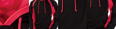 ring-spun 60% cotton/40% polyester • 9.5-oz. • contrast rib-trimmed 2-ply hood with contrast liner and draw-cord • contrast side and sleeve panel inserts • spandex reinforced rib-knit cuffs and waistband • front pouch pocket with headset opening • plate patch under neckline with room for embellishment • left-sleeve cuff logo embroidery • Sizes: XS-4XL