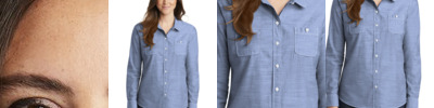 Washed chambray and off-white contrast stitching give this casual garment washed shirt an authentic, laid-back look. 3-ounce, 100% cotton slub chambray Open collar Back shoulder pleats Double chest pockets with buttons Rounded single-button cuffs